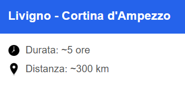 • Collegamenti tra Livigno, Bormio, Cortina, Milano e le sedi olimpiche